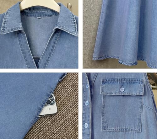• 【PREMIUM FABRIC】This button up denim maxi dresses for women 2025 trendy is made of soft and skin-friendly fabric, lightweight and breathable, elastic fabric makes it fit well, providing you a pleasant wearing experience. The best choice for spring, autumn & summer!