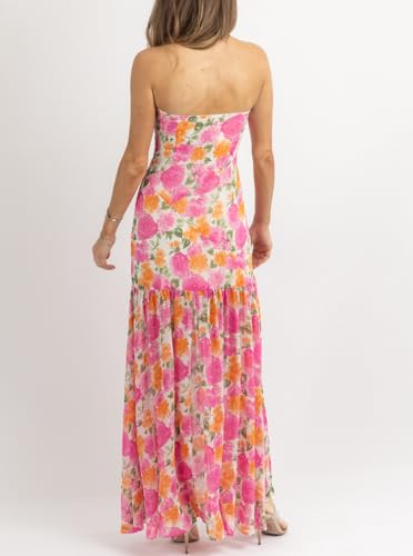 Womens Strapless Maxi Dress Slim High Slit Mesh Long Dress Sexy Party Club Night Out Dress 2024 Summer Vacation 2