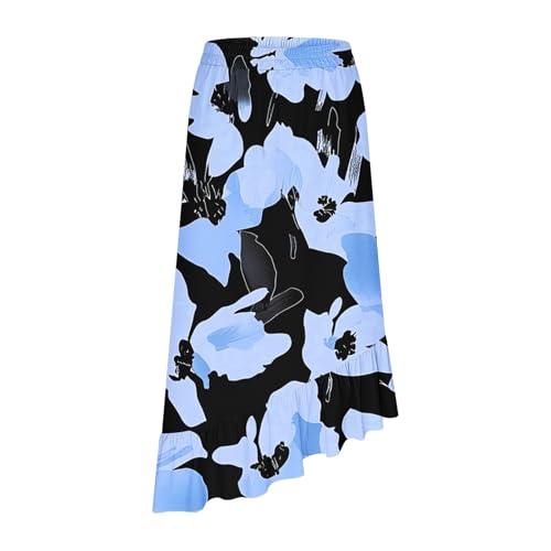 HOT ! Women's Fashion Print A-Line Skirt, High Waist Ruched Irregular Ruffle Hem Skirts Beach Party Casual Clothes