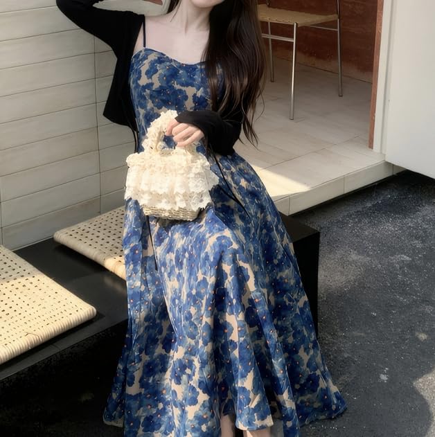 Luxury Strap Skirt Long Dress for Women Elegant Style Floral Pattern High Waist Sleeveless 6