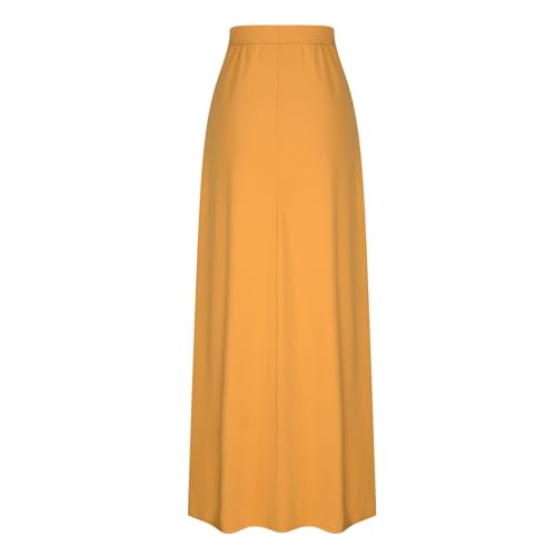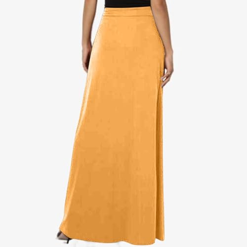HOT ! Womens Maxi Skirt Elastic Basic Solid Tie Dye Foldable High Waisted Midi Length Plus Size A-Line Skirts with Pockets(Orange,Medium)
