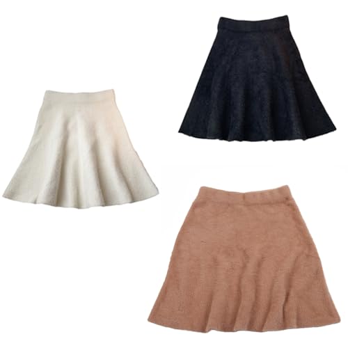 More information about Women Fall Winter Elastic High Waist Imitated Skirt Solid Color Furry Pleated Flared A-Line Short Skirts