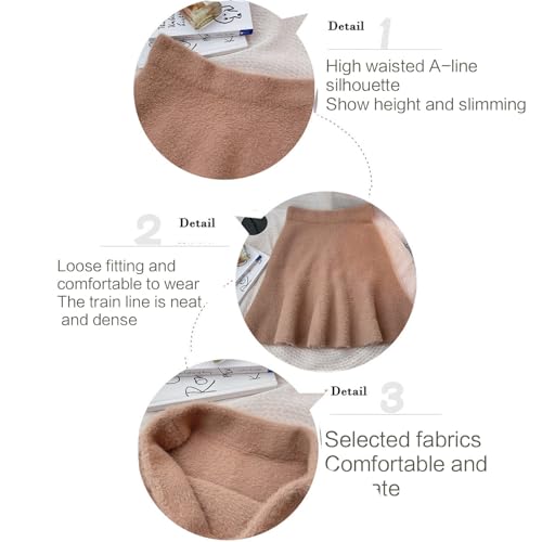 Women Fall Winter Elastic High Waist Imitated Skirt Solid Color Furry Pleated Flared A-Line Short Skirts 7