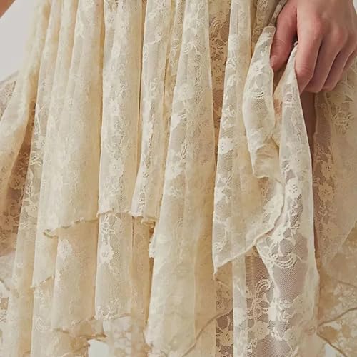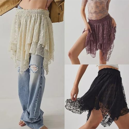HOT ! Women Lace Mini Skirts Solid Color Floral Y2K Skirt Casual Vacation Flowy Fit Aesthetic Sheer Dress Streetwear