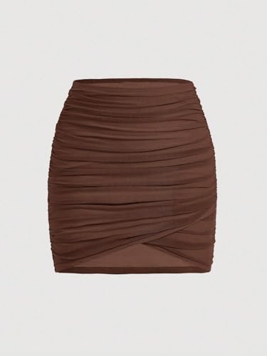 • Knitted Fabric / Plain / Wrap, Ruched / Short / Hand wash or professional dry clean / Bodycon / Unlined / 94% Polyamide, 6% Elastane / Slight Stretch / Brown / / Natural(Mid Waist)