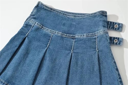 Women’S Pleated Jean Skirt with Belt High Street Short Bottoms Casual Mini Jean Skirt 5