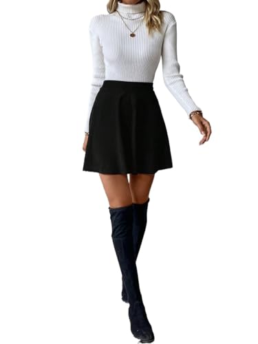 • Mini / Unlined / Knitted Fabric / Zipper / No / Daily / Casual / Black / Polyester / Machine wash or professional dry clean / Skort, Flared / High Waist