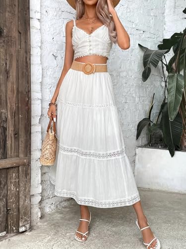 • Unlined / Plain / High Waist / Woven Fabric / Contrast Lace, Tiered Layer, Ruffle Hem / Layered/Tiered / Casual / Machine wash or professional dry clean / Long / Slight Stretch