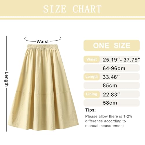 HOT ! Womens Pleated Midi Skirt Elastic High Waist A-Line Skirts Loose Fit Casual Skirt with Pockets for Porm Party Club