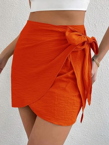 • Wrap / High Waist / Regular Fit / Non-Stretch / 100.0% Polyester / Plain / Woven Fabric / Unlined / Machine wash or professional dry clean / Wrap, Knot / Mini / Orange