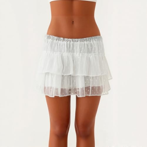 • Matching:Women y2k tiered layer skirt high waist lace flowy short skirt sexy lace mesh ruffle hem cake flared skirt is easy to match with camisoles,spaghetti strap cami tank vest,strapless tube top,sleeveless tank shirt,bow tie babydoll peplum shirt button down summer shirt,flats,heels,or boots
