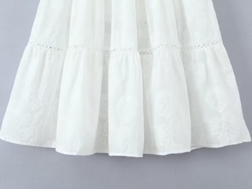 French Country Lazy Cotton Embroidered Skirt Minimalist White Holiday Casual High Waist Midi Skirt Women 4