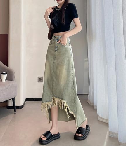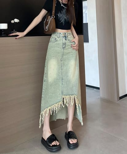 • **Style**: Women's medium-length denim skirt, women's tassel skirt, women's high-waist straight skirt, women's casual skirt