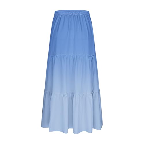 HOT ! Skirts for Women Midi Length Stretch Waist Casual Drawstring Gradient Color Pleated Skirt Loose Trendy Flowy Clothes