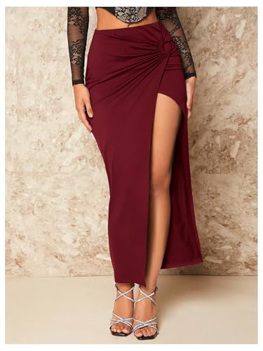 • Feature: Twist Front, Split Thigh, High Waisted, Maxi Length, Plain, Asymmetrical Long Skirt for Women