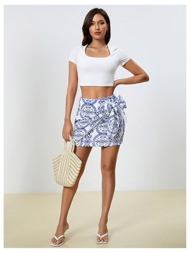 Milumia Women's Summer Boho Wrap Mini Skirt Allover Print High Waisted Knot Side Short Vacation Beach Skirt 4