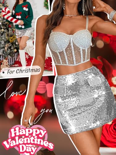 Kaei&Shi Sparkly Sequin Mini Skirt,High Waisted Glitter Holiday Skirts,Disco Concert Outfit for Women 6