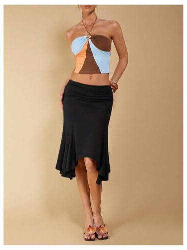 HOT ! Floerns Women's Summer Midi Skirts Asymmetrical Ruffle Hem Ruched Date Night Skirts