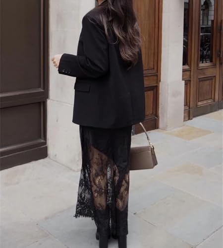 More information about Women's Maxi Skirts Classic Satin Patchwork Lace Hollow-Out High Waist Ankle Length Skirt