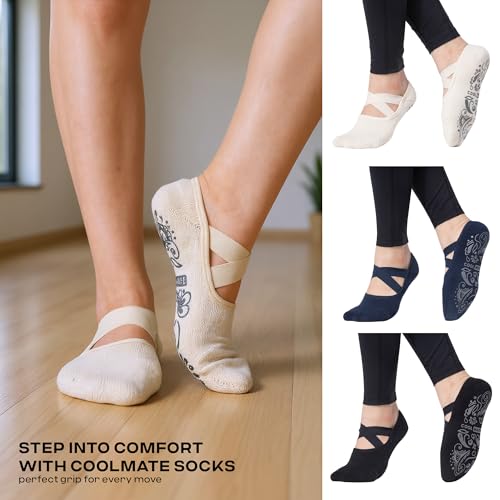 HOT ! CoolMate Pilates Socks with Grips for Women, Yoga Socks, Crew Non Slip Women for Workout, Barre, Pilates Gifts