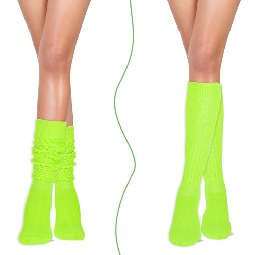 2 Pairs Women Slouch Socks Soft Scrunch Socks 80s Neon Long Stack Socks Thigh High Boot Scrunchie Socks Size 9-11 7
