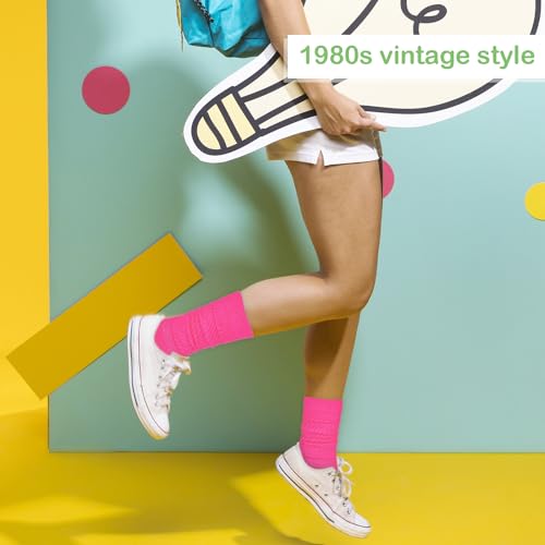 • 【Multiple Ways to Wear】Scrunchie socks for women have a retro 1980s style and can be stretched without restriction. There are countless fun ways to wear these stacked socks, they can be stretched to knee-high socks or stacked into 90s socks, and you can adjust the length according to your preferences to create a cute and unique look.