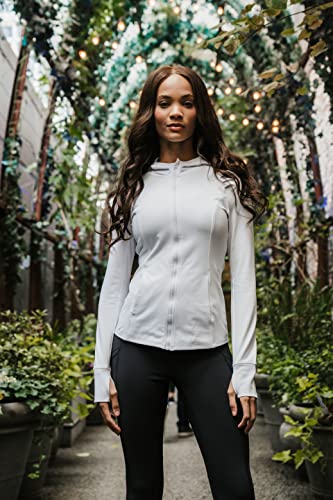 • Details: Our Yogalicious Slim Fit Long Sleeve Full Zip Up Hoodie Jacket has thumb holes to keep your sleeves down, while increasing hand coverage and warmth. The high zip up neck adds a cozy touch and provides additional warmth to this workout jacket. The hood can be worn up over your head for insulation, and an added stylish flair. This running jacket is lightweight making it the perfect layer for indoor and outdoor workouts or nurses on the go!
