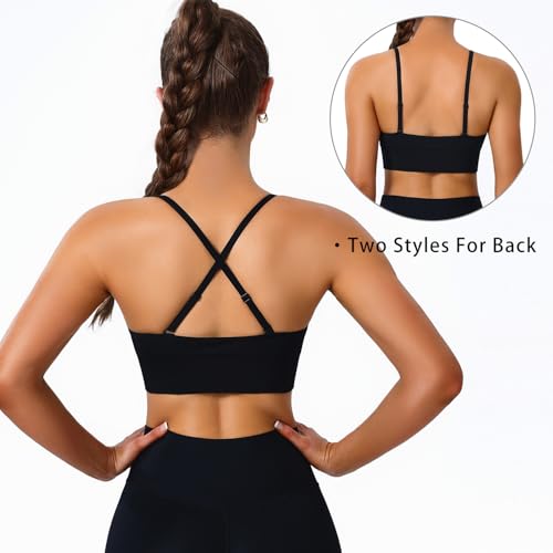 • Two Styles For Strap:Personalization and comfort are at the heart of this adjustable strap triangle cup sports bra. The thin straps sports bras can be easily adjusted to suit your preference, allowing you to customize the fit and comfort to match your needs. The option to wear the straps in a criss-cross back or wide U-back style further enhances the bra's adaptability, providing you with the freedom to choose the best configuration for your activity and comfort level.