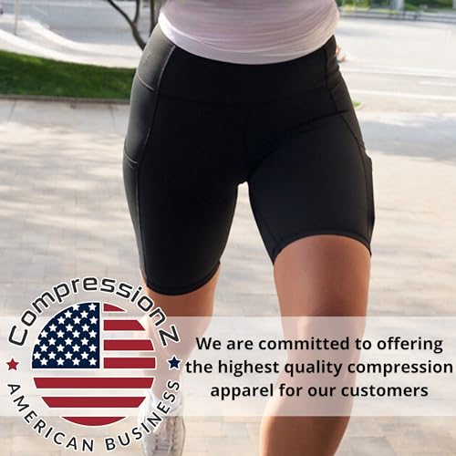 CompressionZ Women's Compression High Waisted Biker Shorts, Tummy Control for Workouts 10"/7" 6