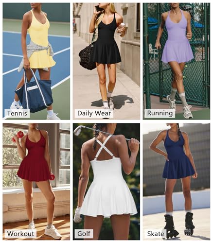 • 【Versatility】: This flowy tennis dress for women with shorts is perfect for daily activewear, casual, golf, wokout, skater, going out, running, tennis, travel, parties, clubbing, shopping, sport and more. Womens summer mini dress comes in black, white, yellow, purple, blue, red and so on.
