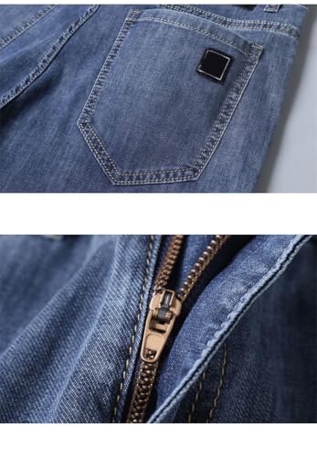 More information about Men's Summer Elastic Jeans Fashion Comfortable Business Straight Stretch Cotton Casual Denim Pants Thin Trousers