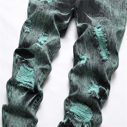 Men's Straight Leg Slim Fit Jeans Vintage Distressed Denim Pants Fashion Washed Ripped Jean Trousers (Green 3,42) 7