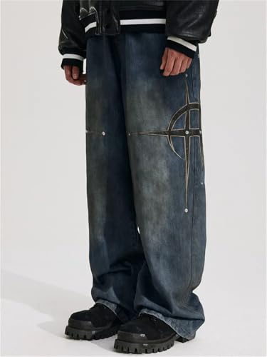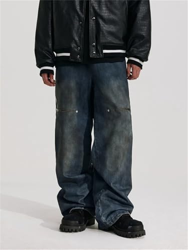 • CASUAL DESIGN: Vintage distressed, wide leg, loose fit, fashionable and casual,wide leg pants men; Zipper fly and button design, easy to fit, creating a casual and attractive silhouette; Multiple pockets are easy to put your cell phone