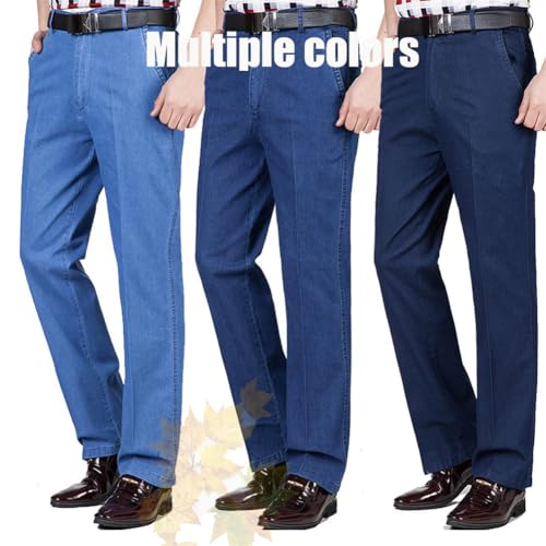HOT ! Mens Elastic Waist Jeans Relaxed Fit, Jeans for Older Men, Men's Classic Straight Fit Stretch Jeans, with Zipper and Button