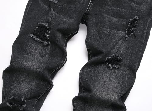 Men's Slim Fit Stretch Jeans Ripped Distressed Straight Leg Fashion Black Pants 6