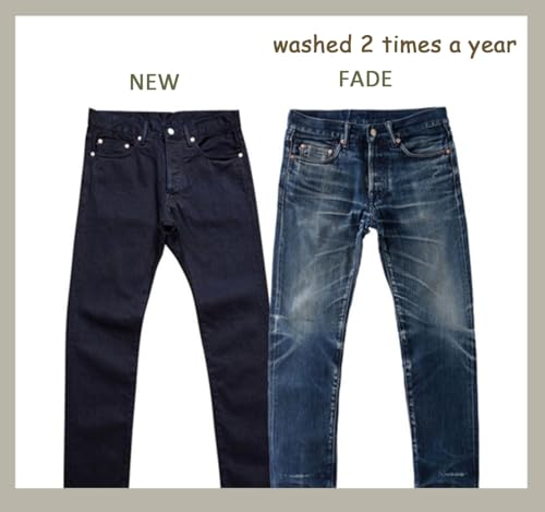 • WEAR MORE AND WASH LESS:Raw jeans we suggest:Wear more and wash less,do not clean if not dirty, try to wash by hand;if machine wash,please turn the inside of the pants over to clean,to prevent uneven color fading or white marks.