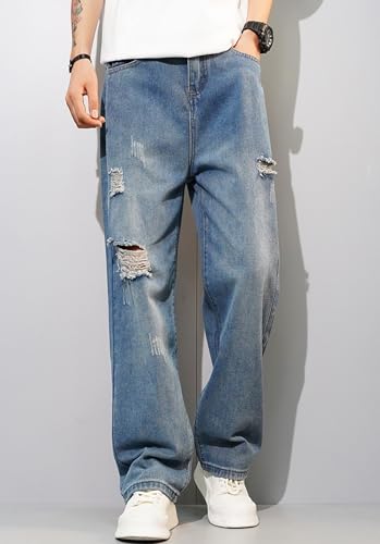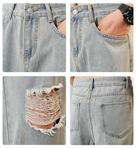 More information about Men's Ripped Denim Pants High Waist Baggy Casual Straight Wide-Leg Fashion Vintage Comfort Distressed Jeans