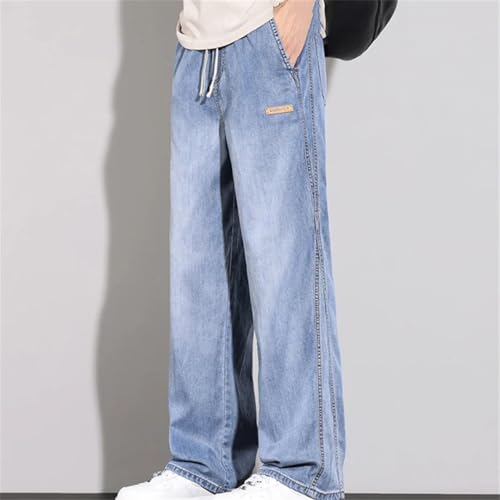 HOT ! Men's Summer Thin Denim Jeans Loose Fit Stretch Waist Korean Vintage Style Casual Long Pants