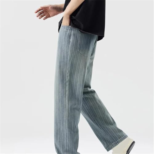 HOT ! Men's Striped Jeans Y2K Streetwear Style Baggy Straight Denim Pants Retro INS Look Trousers