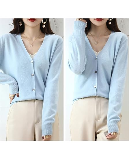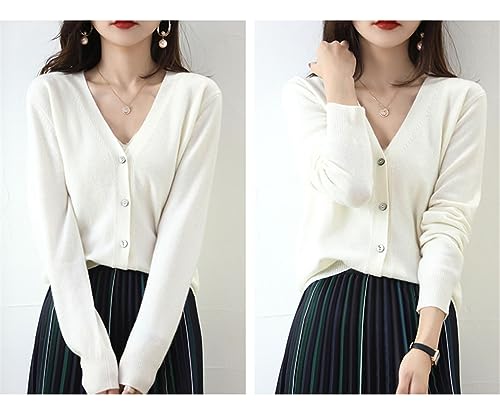 Women's V-Neck Sweater Knitted Cardigan Thin Loose Coat Spring and Autumn Long Sleeved Short Knitwear 5