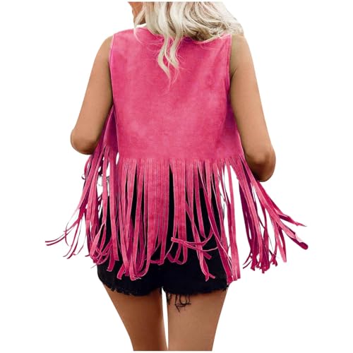 More information about Women Fringe Vest Tops Vintage Western Classic Faux Suede Leather Open Front Sleeveless Cardigan 70s Cowboy Jacket