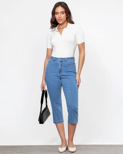 GRAPENT Capri Jeans for Women High Waisted Stretchy Denim Capris Front Seamed Cropped Skinny Slim Fit Jeans with Pockets 6