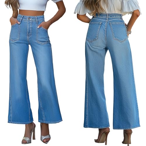 • ♥ 【Design】:Knoint Women's Micro Flare Wide Leg Jeans, a stylish and versatile addition to your wardrobe. These trendy straight denim pants feature a wide leg design that offers a flattering silhouette for various leg types. The high waist and slant pockets detail add a touch of sophistication, while the loose fit ensures comfort and flexibility for all-day wear.