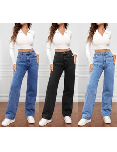 Womens High Waist Jeans Wide Leg Straight Boyfriend Denim Pants Loose Fit Casual Trendy Jeans Trousers 3