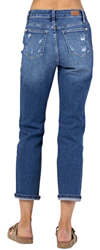 HOT ! Judy Blue Women's High Waist Rainbow Embroidery Cropped Straight Leg Jeans