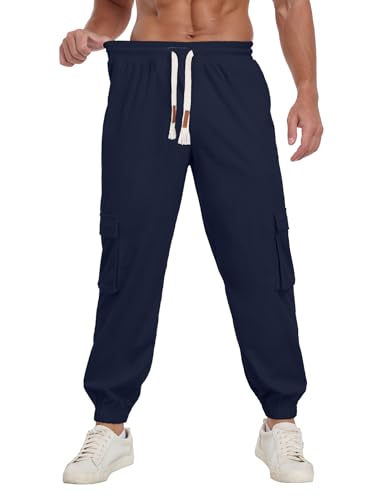 More information about Askdeer Mens Corduroy Joggers Pants Casual Cargo Pants Drawstring Elastic Waist Baggy Tapered Sweatpants with 5 Pockets Navy Blue