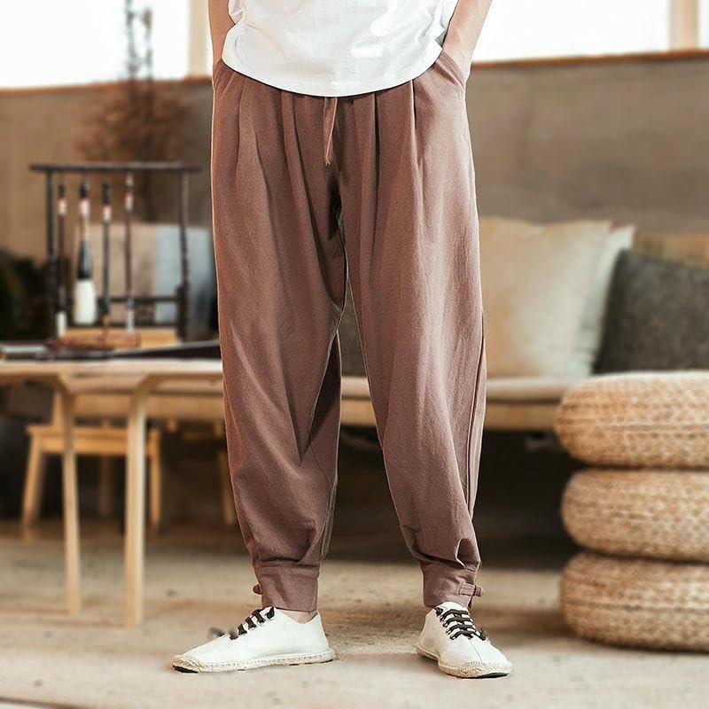 Men's Spring Summer Cotton Linen Loose Tapered Layman Zen Long Pants 1