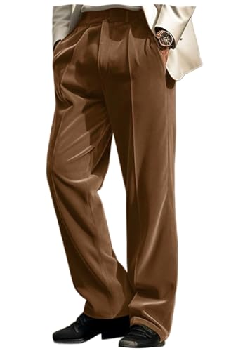 More information about VENNYNG Men's Velvet Dress Pants Casual Trousers Front Pocket Straight Wide Leg Business Daily Wear