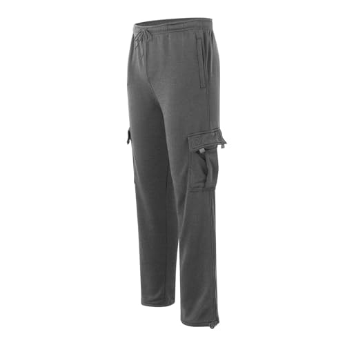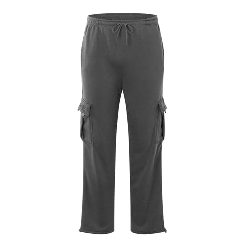 HOT ! Fleece Lined Sweatpants for Men Big and Tall Solid Color Drawstring Elastic Waist Baggy Cargo Pants with Pockets