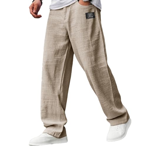 More information about Mokaloha Mens Pants, Men's Casual Hemp Embroidered Logo Drawstring Loose Elastic Waist Pocket Trousers